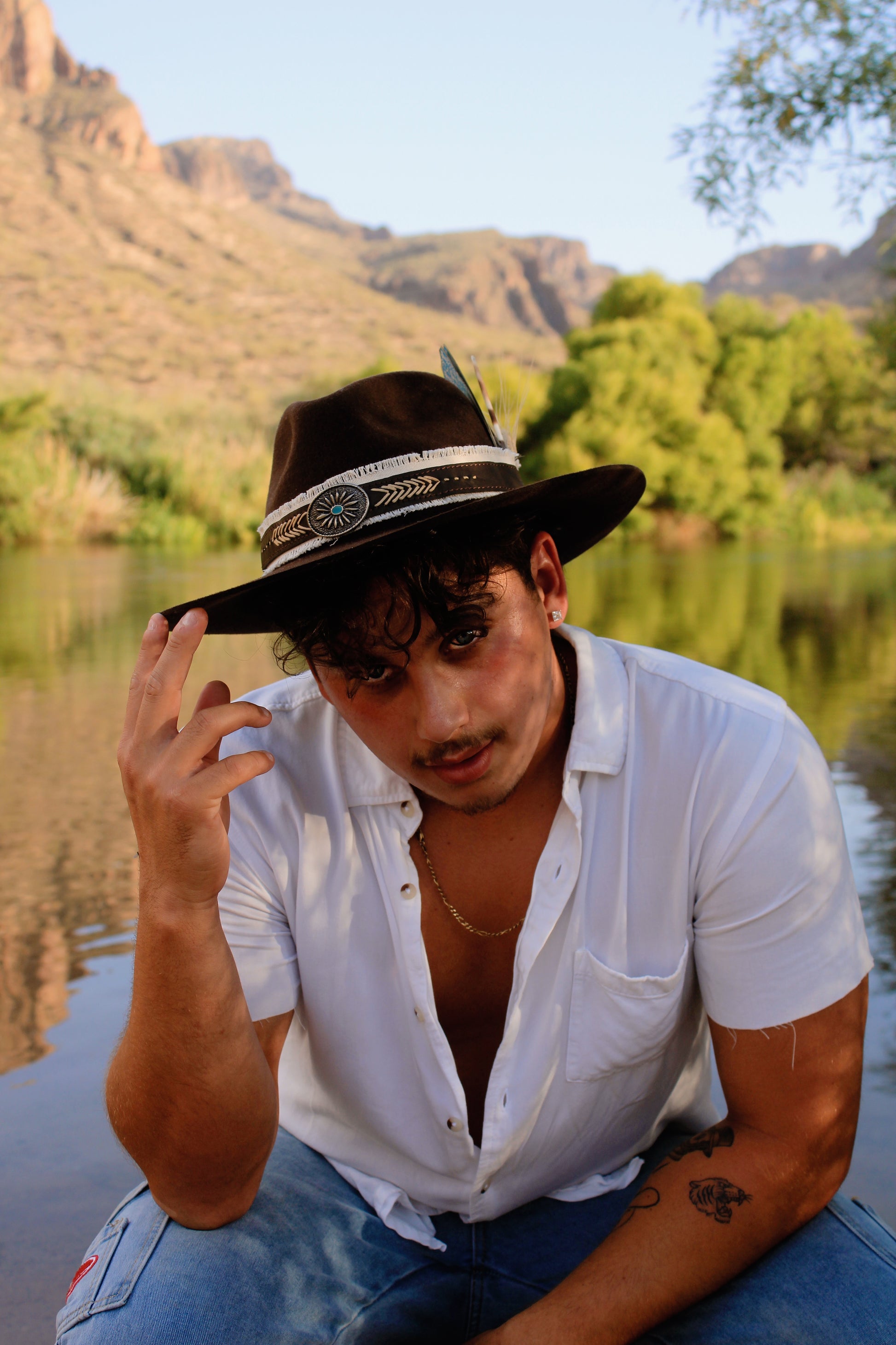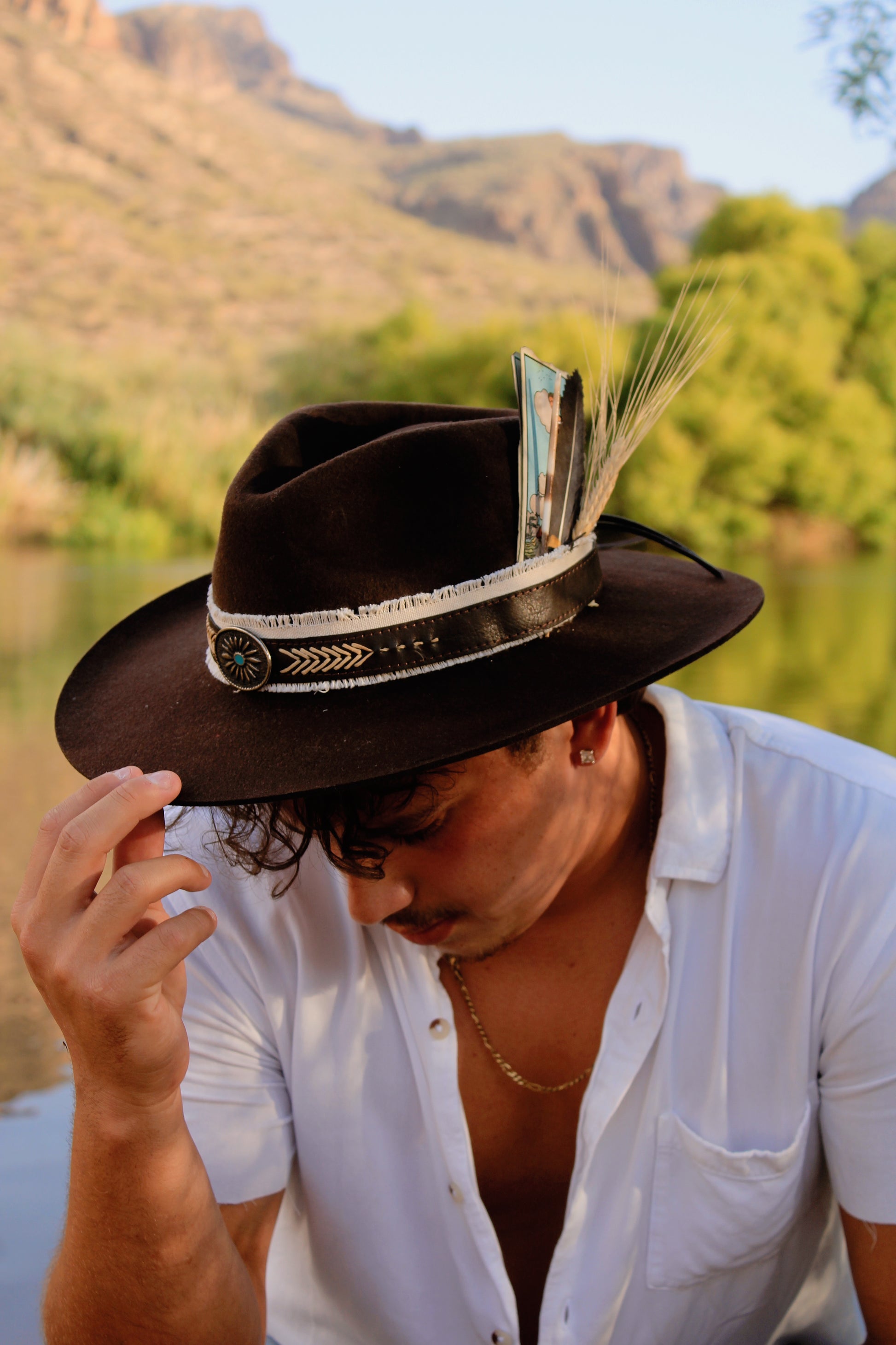 BROWN BAND WITH TURQUOISE STONE