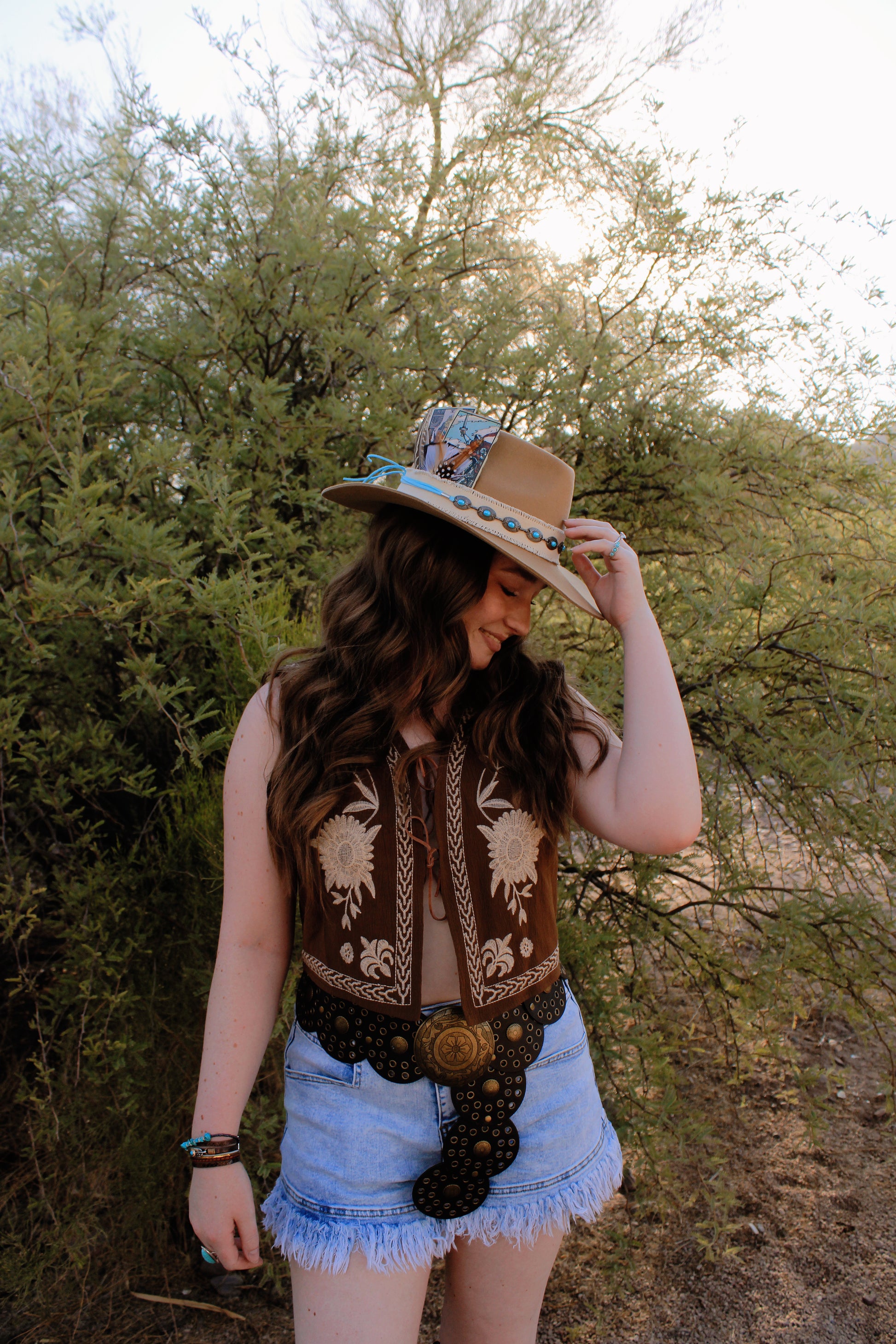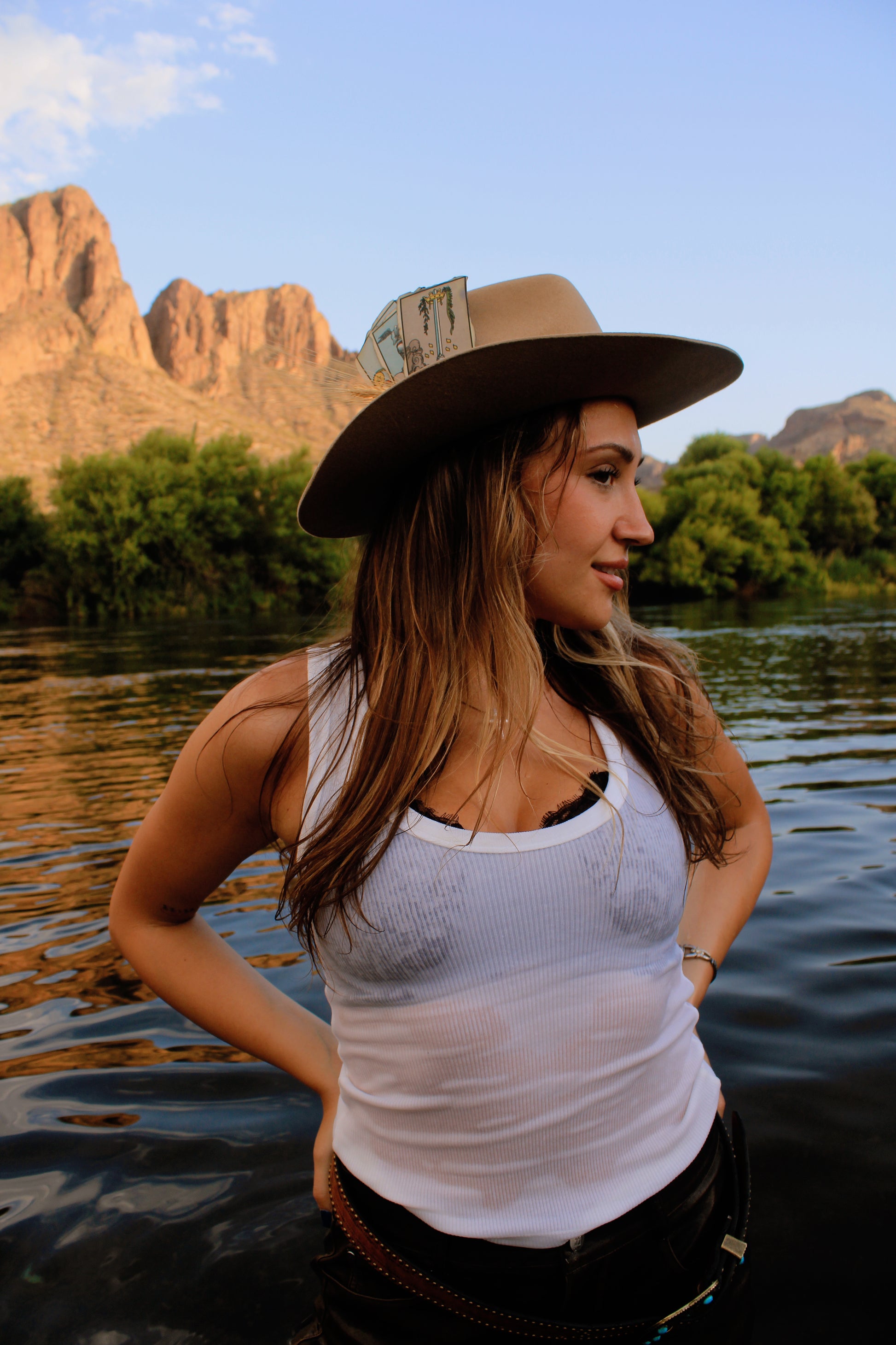 Starting price at $200. Ava and Elisa are wearing a cattleman classic style hat with full customization (at additional cost)in the color Camel.