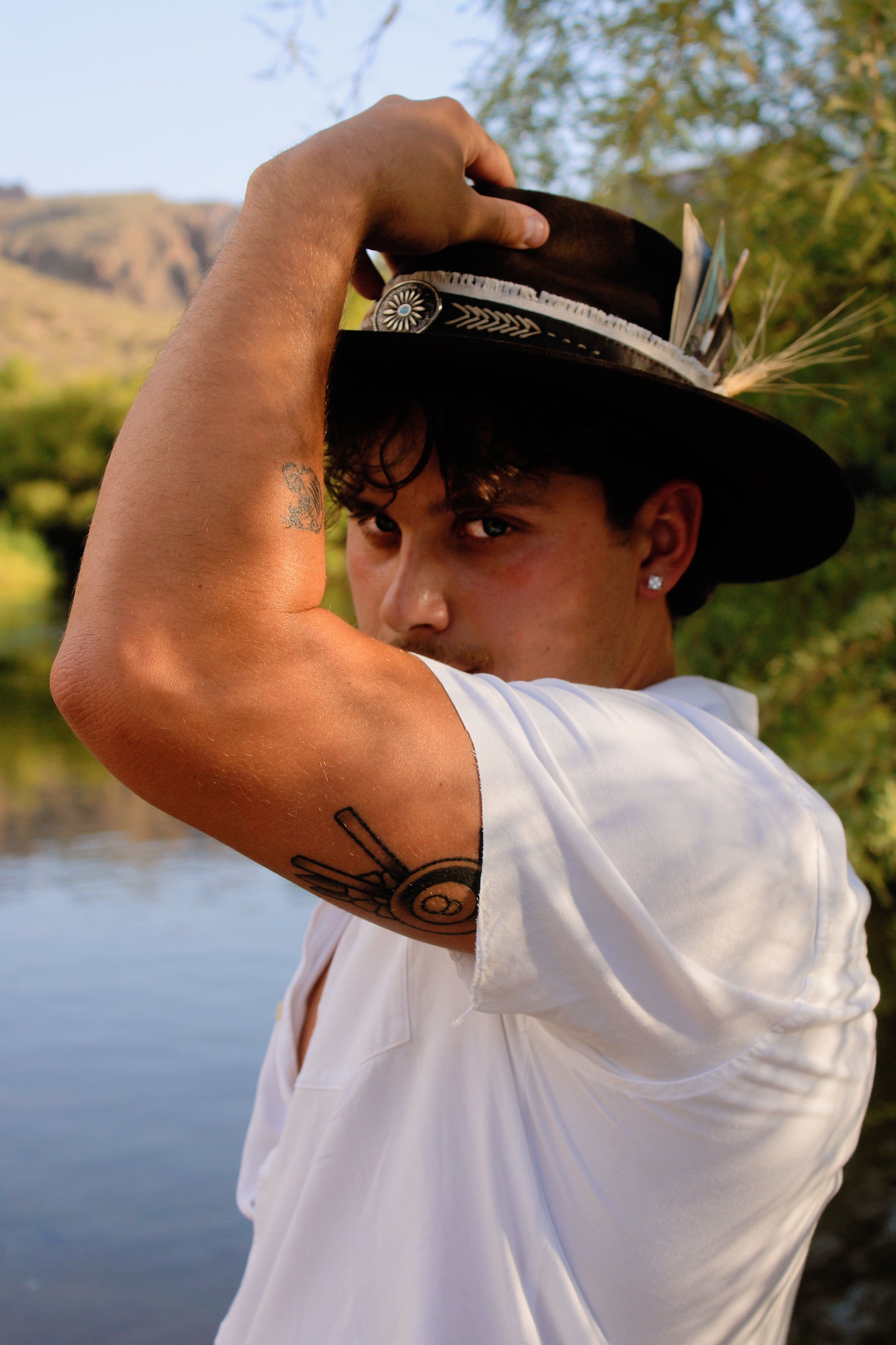 Starting price at $200. Dominic and Monroe are wearing a cattleman classic style hat with full customization (at additional cost) in the color of Wood.