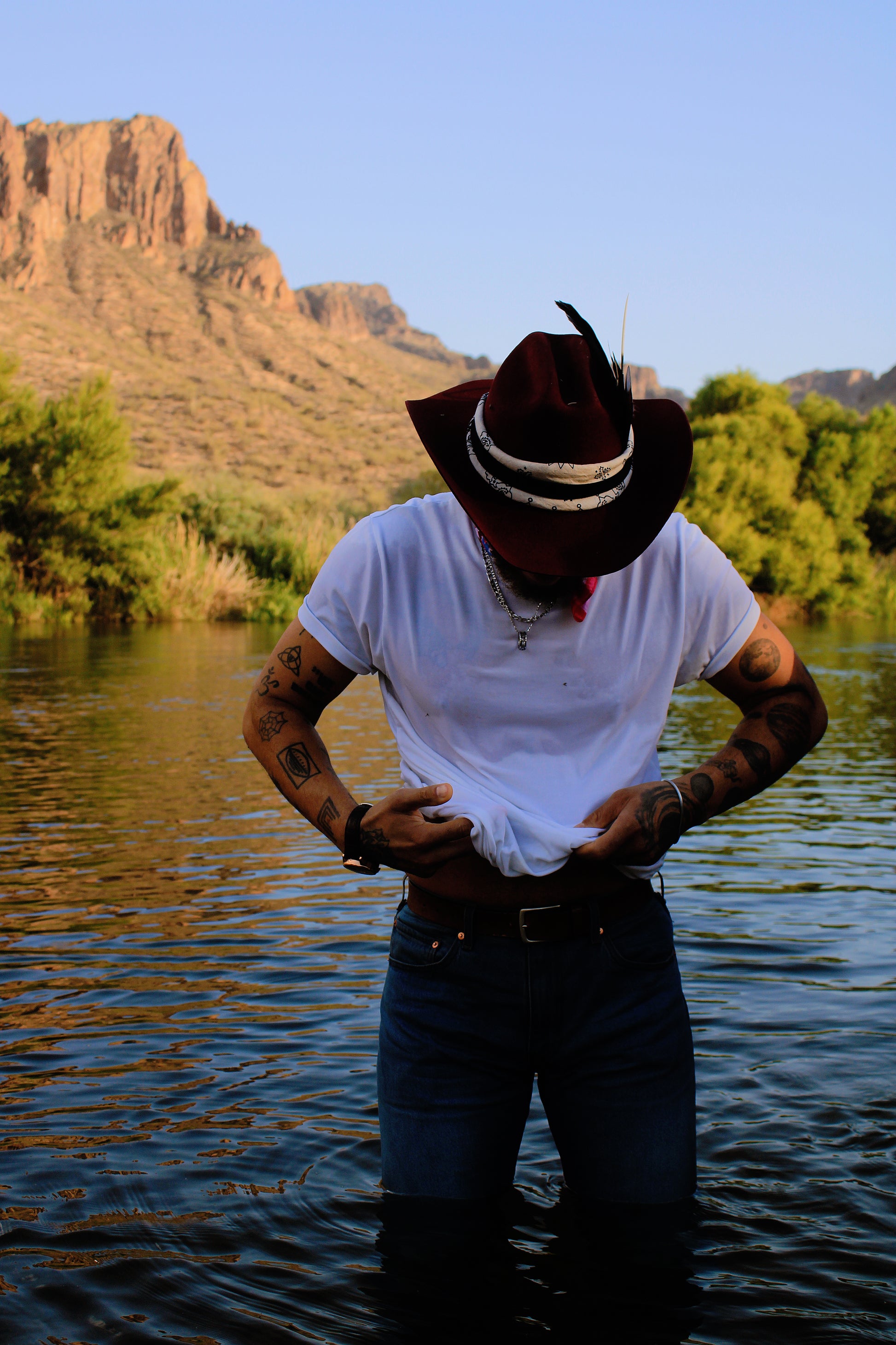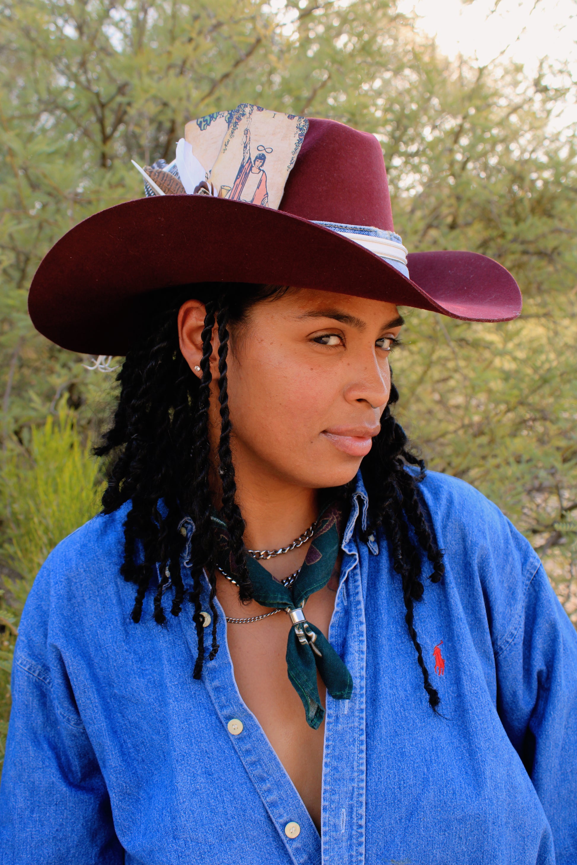 Starting price at $200. Nicole and CJ are wearing a rancher classic style hat with full customization (at additional cost) in the color of Bloom.